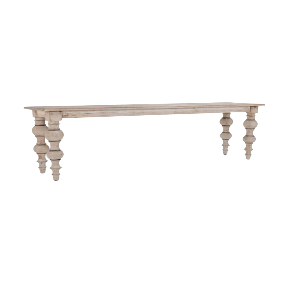 Baker Bench is the perfect addition to your dining space, offering a warm and inviting atmosphere. Handcrafted from solid wood, this bench features a distressed whitewash finish that adds a charming, timeworn appeal.