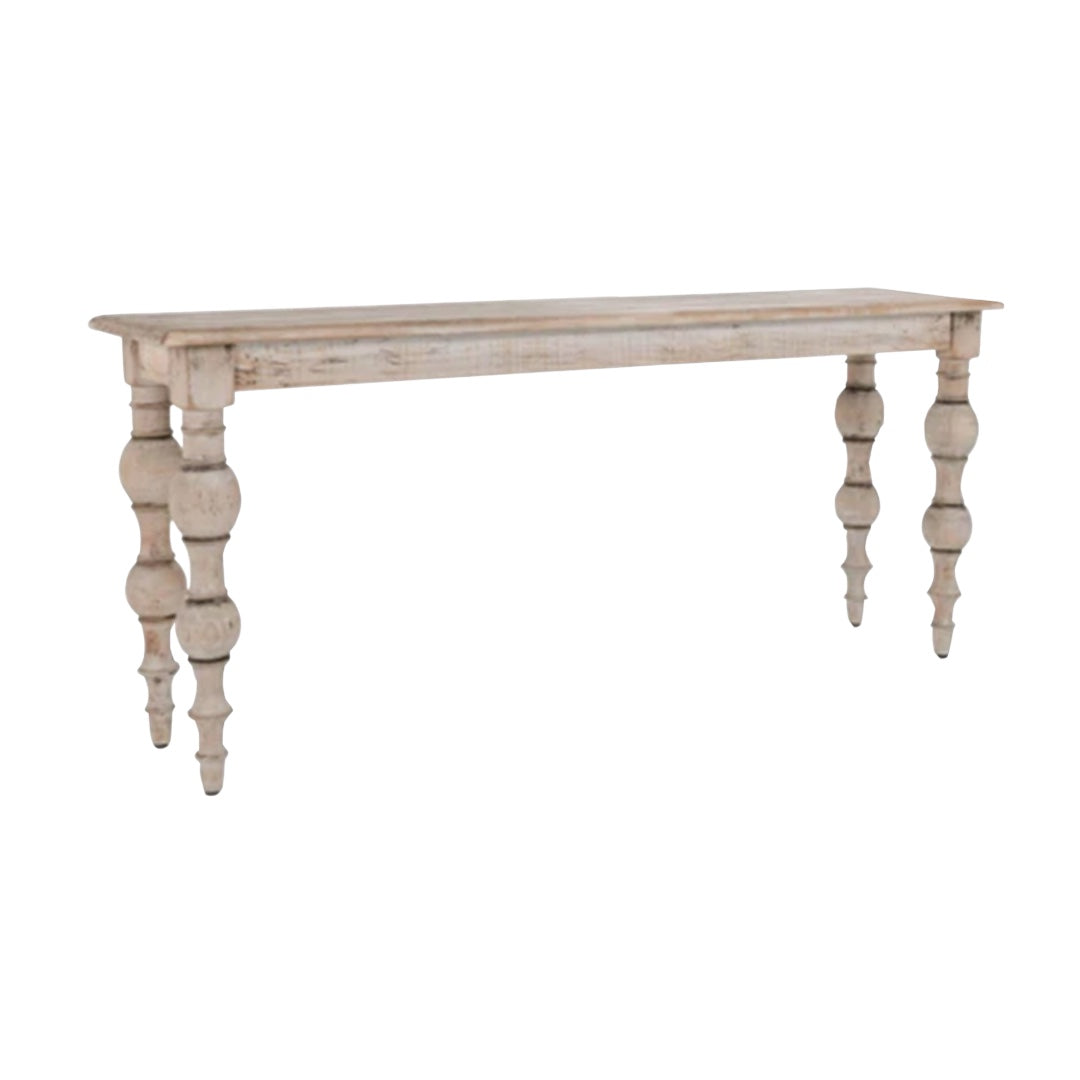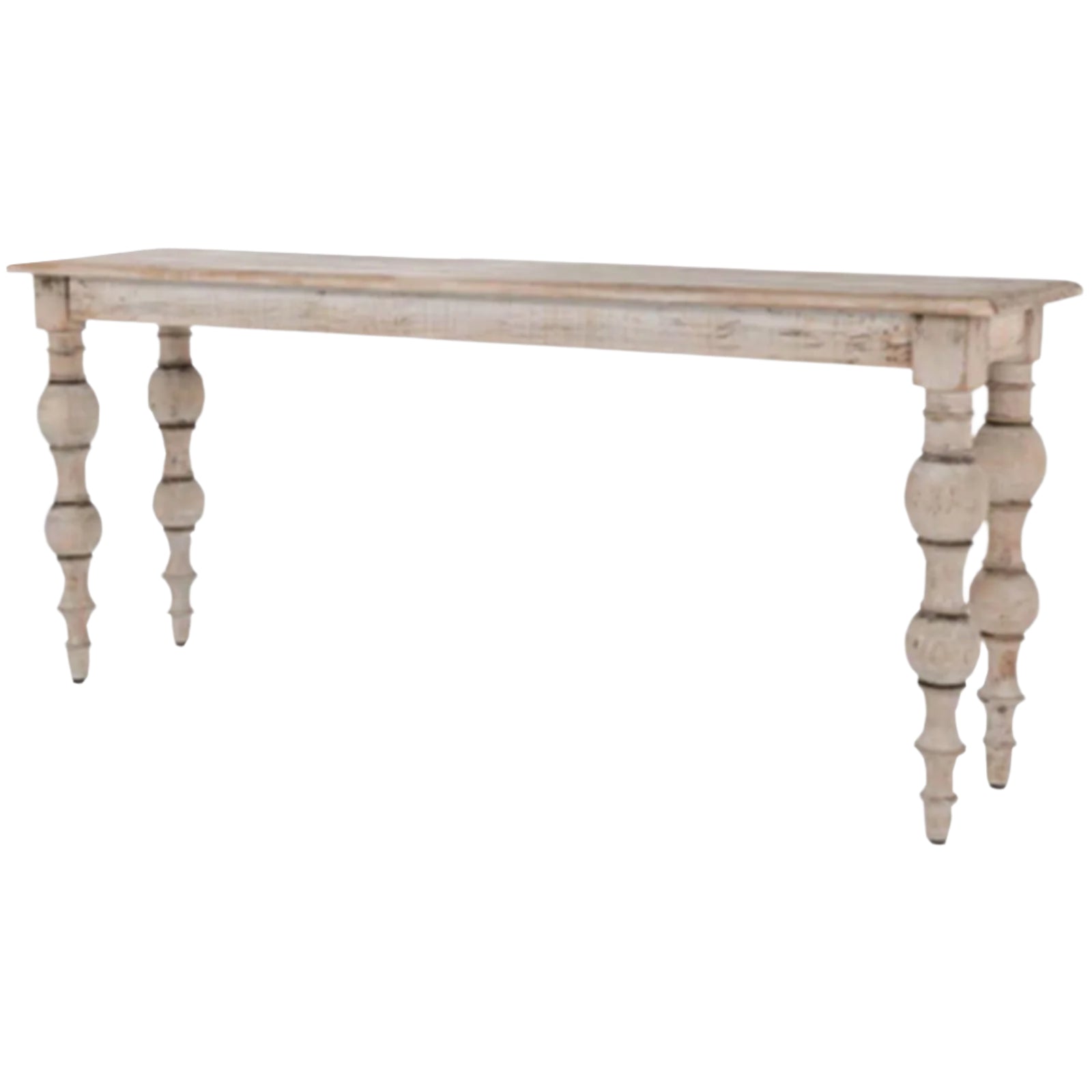 Bring timeless charm and vintage appeal to your space with the beautifully handcrafted Rustic Whitewashed Console Table. Made from solid wood, this piece features elegantly turned legs and a distressed whitewashed finish that adds character and warmth to any room.