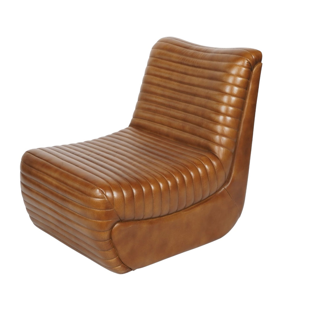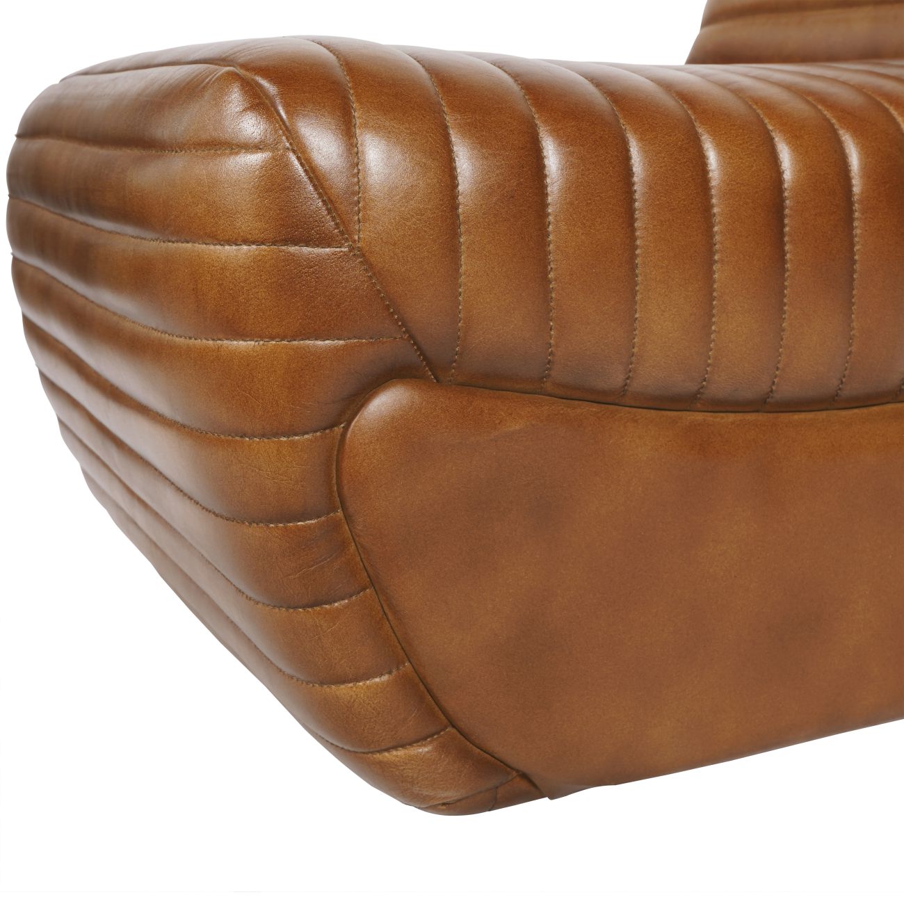 The Belmont is a comfortable occasional chair featuring hand stitched leather upholstery available cognac brown . Parallel seam stitching detail on front and stud buttoning on the back creates a retro feel. Ideal for any reading nook or for a feature to an industrial inspired home.