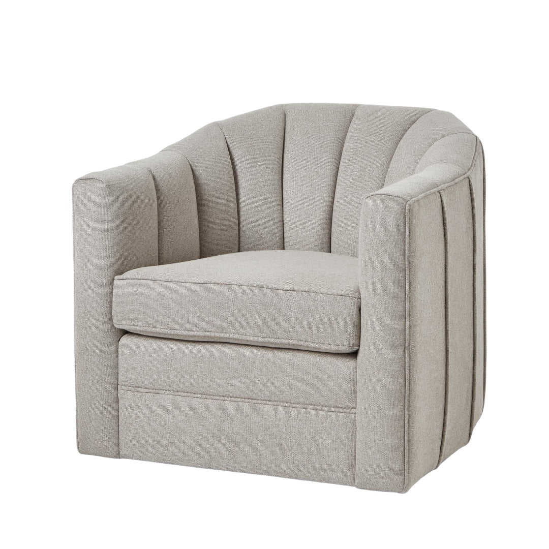 The Bow Swivel Chair in Oatmeal Twill combines comfort and elegance with its soft fabric and sleek design. Ideal for modern and minimalist spaces, it pairs beautifully with neutral rugs and wooden accents.