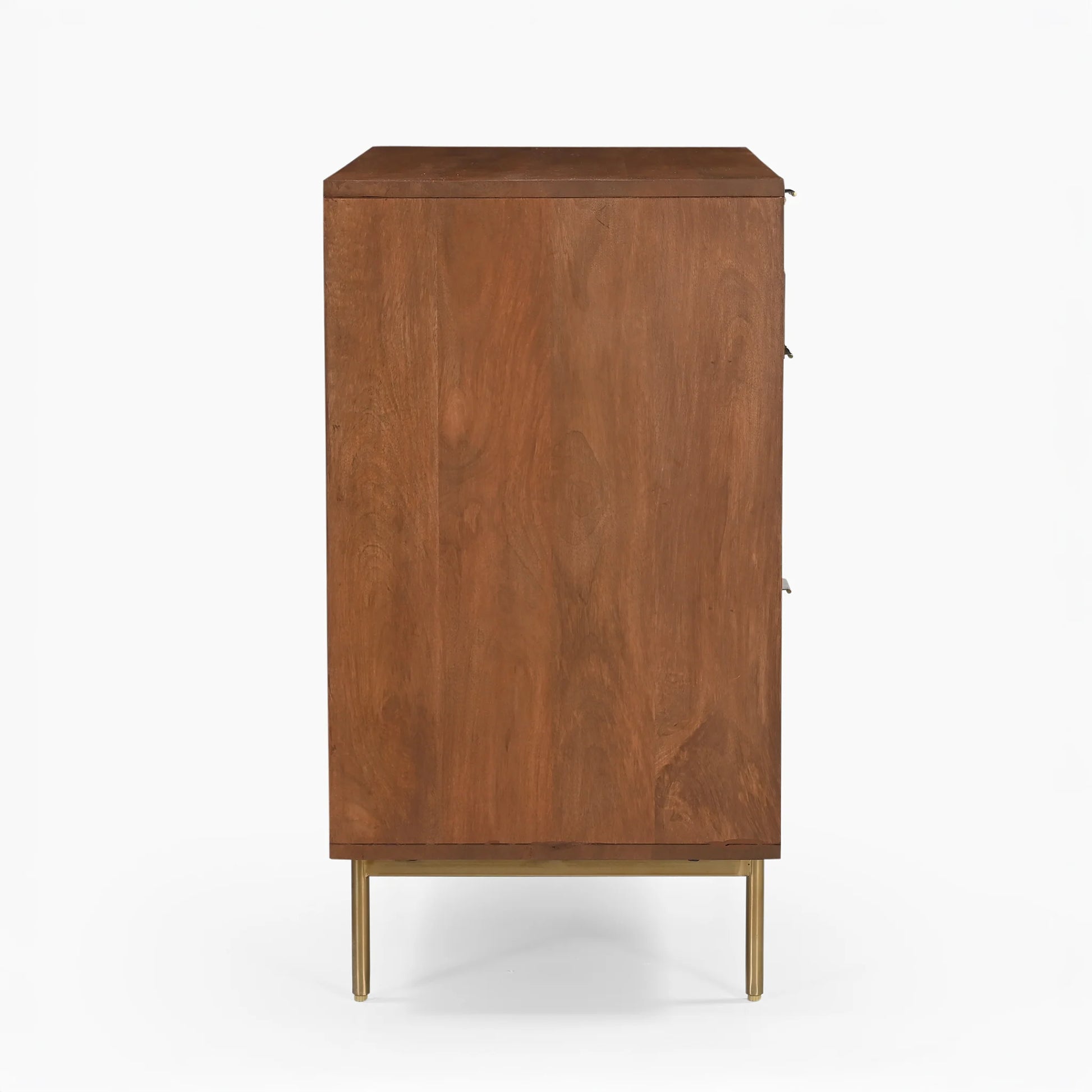 Experience the ultimate in refined elegance with the Brass and wooden Block chest of drawers a statement piece designed exclusively for the discerning homeowner. This exquisite addition elevates any bedroom setting, combining unmatched style with functional sophistication.