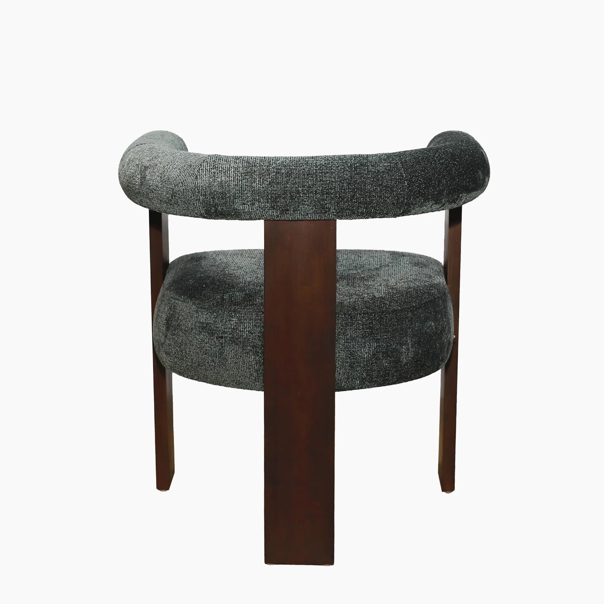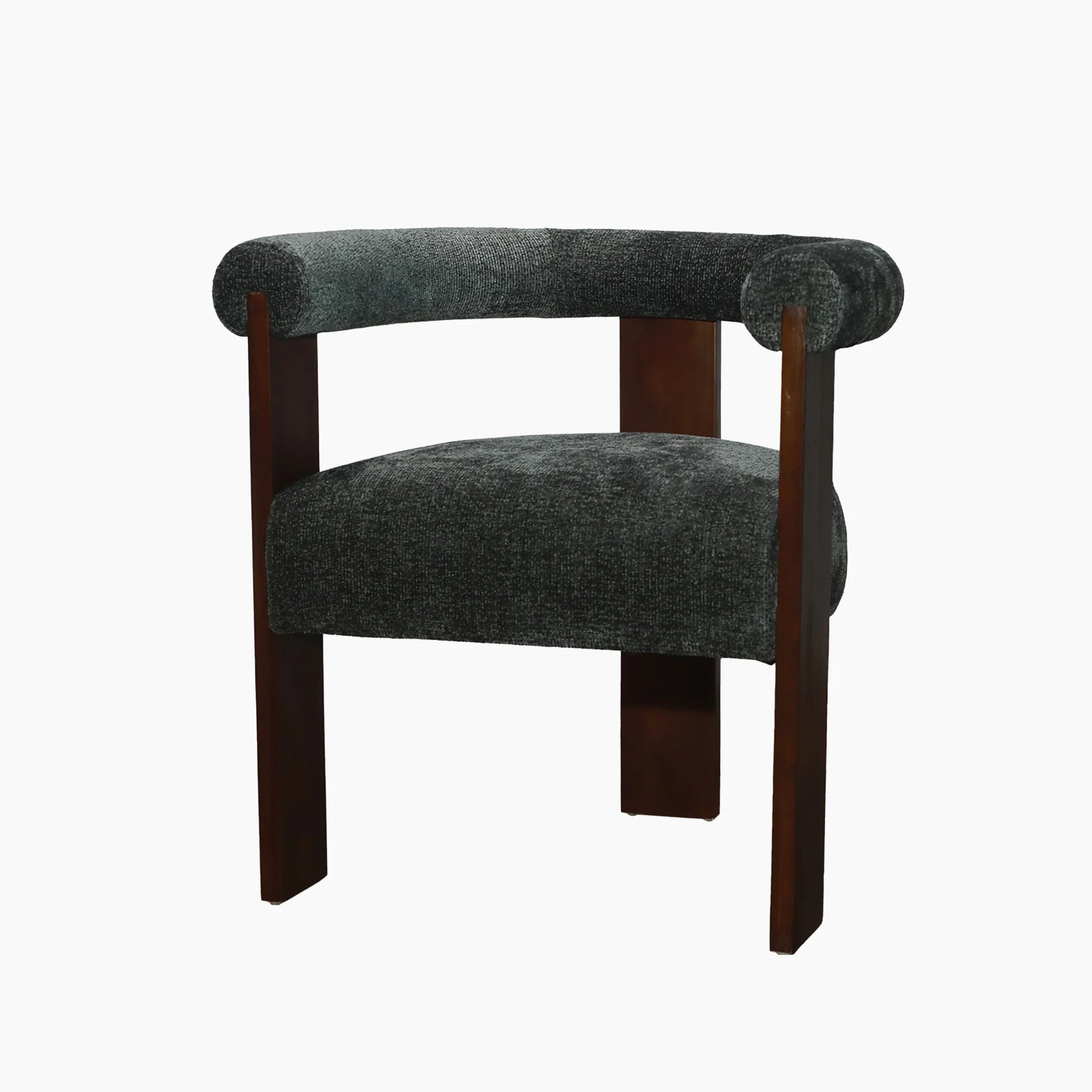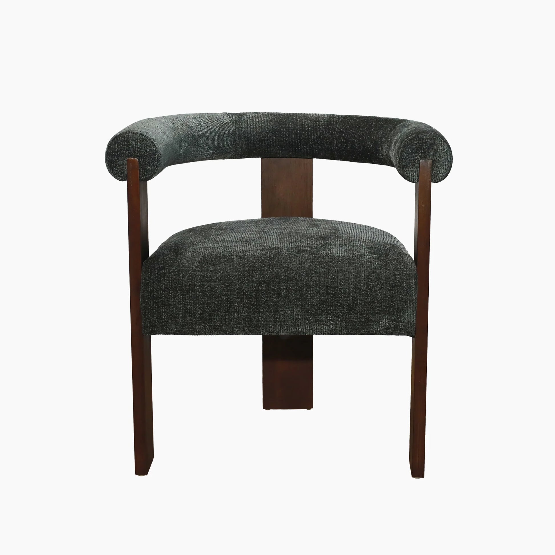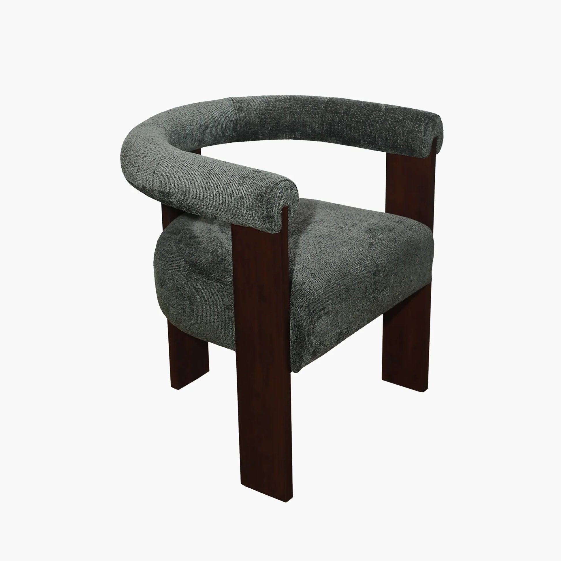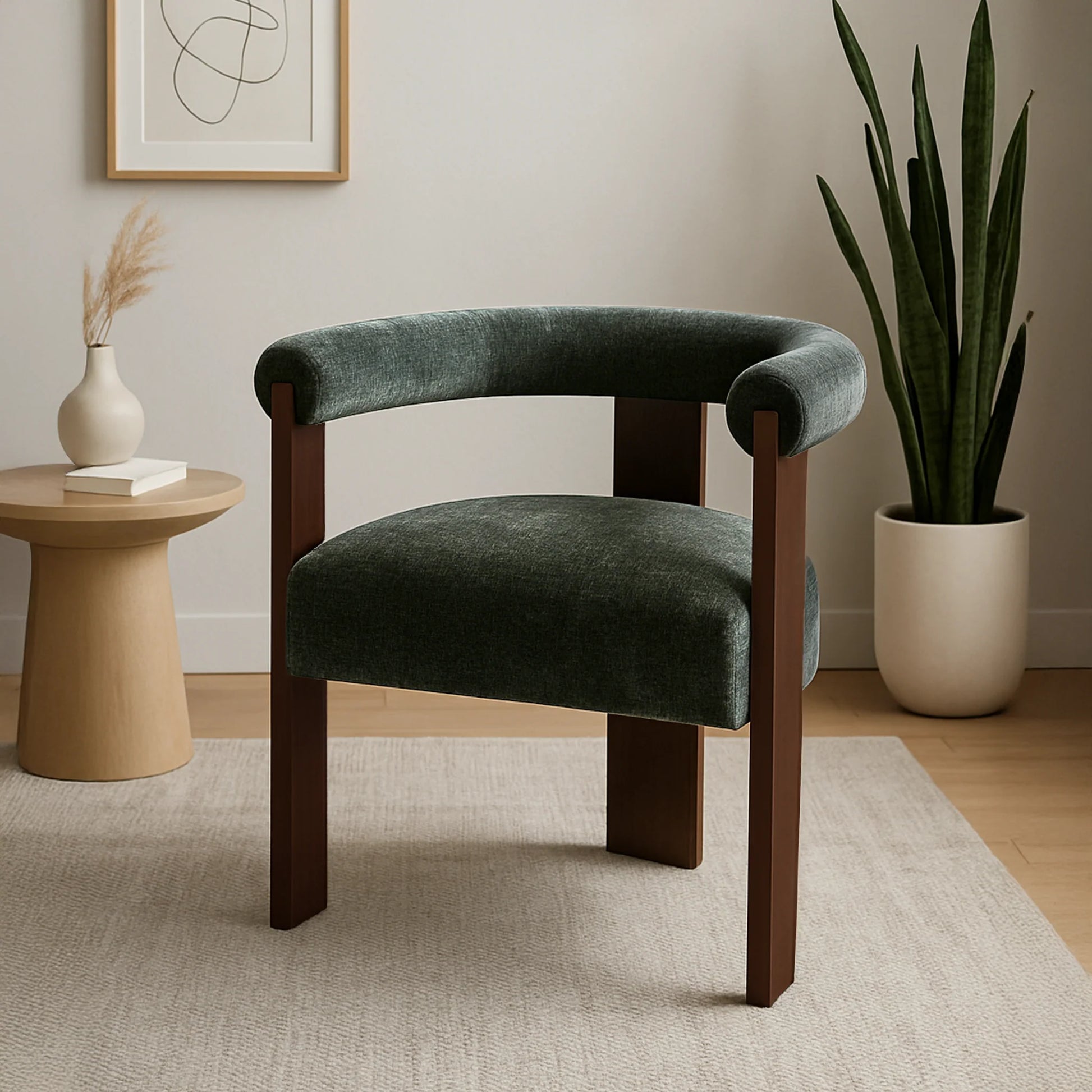 Upholstered in dark green chenille fabric has a softly sculpted form, the Brook Dining Chair brings a fresh, contemporary feel to dining spaces. An ergonomic, cushioned seat and back ensure comfort, while natural-finished rubber wood legs add warmth and strength. Glamorous yet grounded, Brook works beautifully as a statement piece at the dining table—or styled as an accent chair in eclectic interiors.