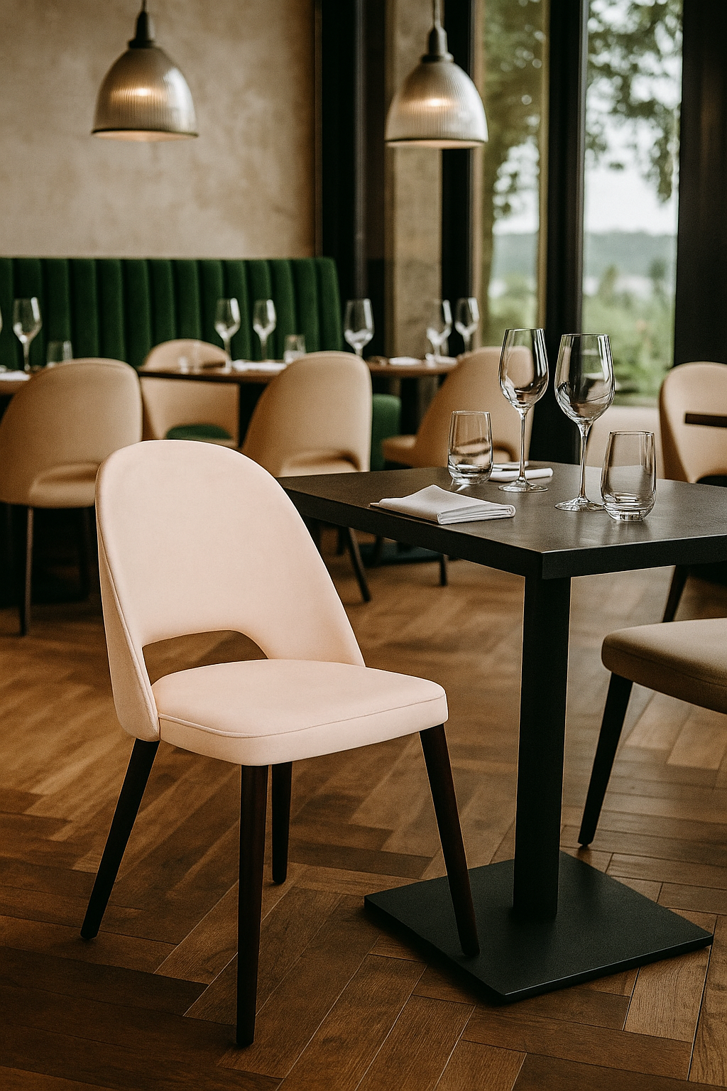 The Halo Side Chair is a modern contract-grade dining chair designed for restaurants, hotels, cafés, co-working spaces, and premium residential interiors. Featuring a sculpted wrap-around backrest with a subtle open-curve detail, Halo offers exceptional comfort while maintaining a clean, contemporary aesthetic.
