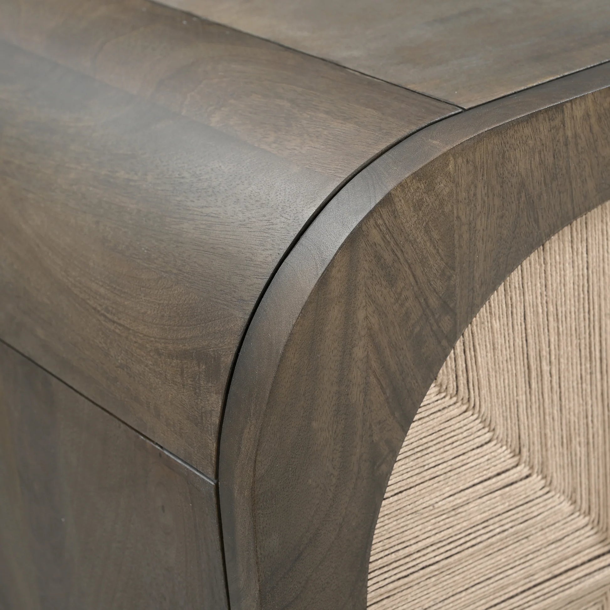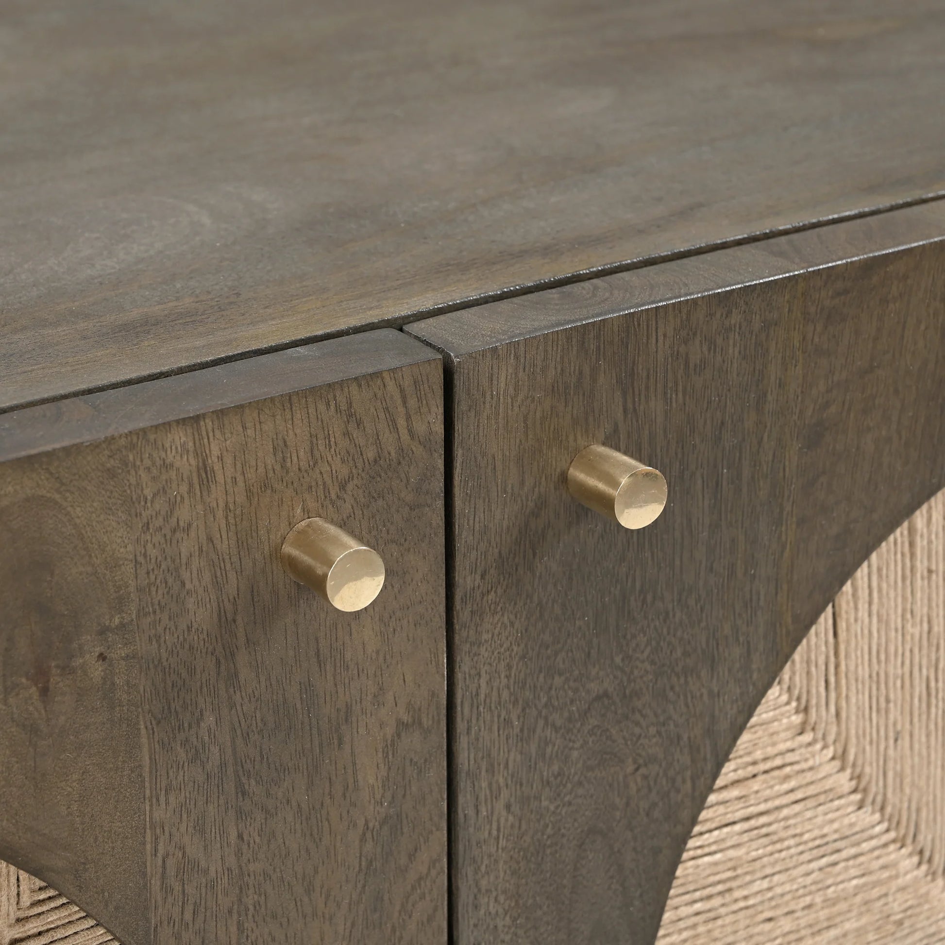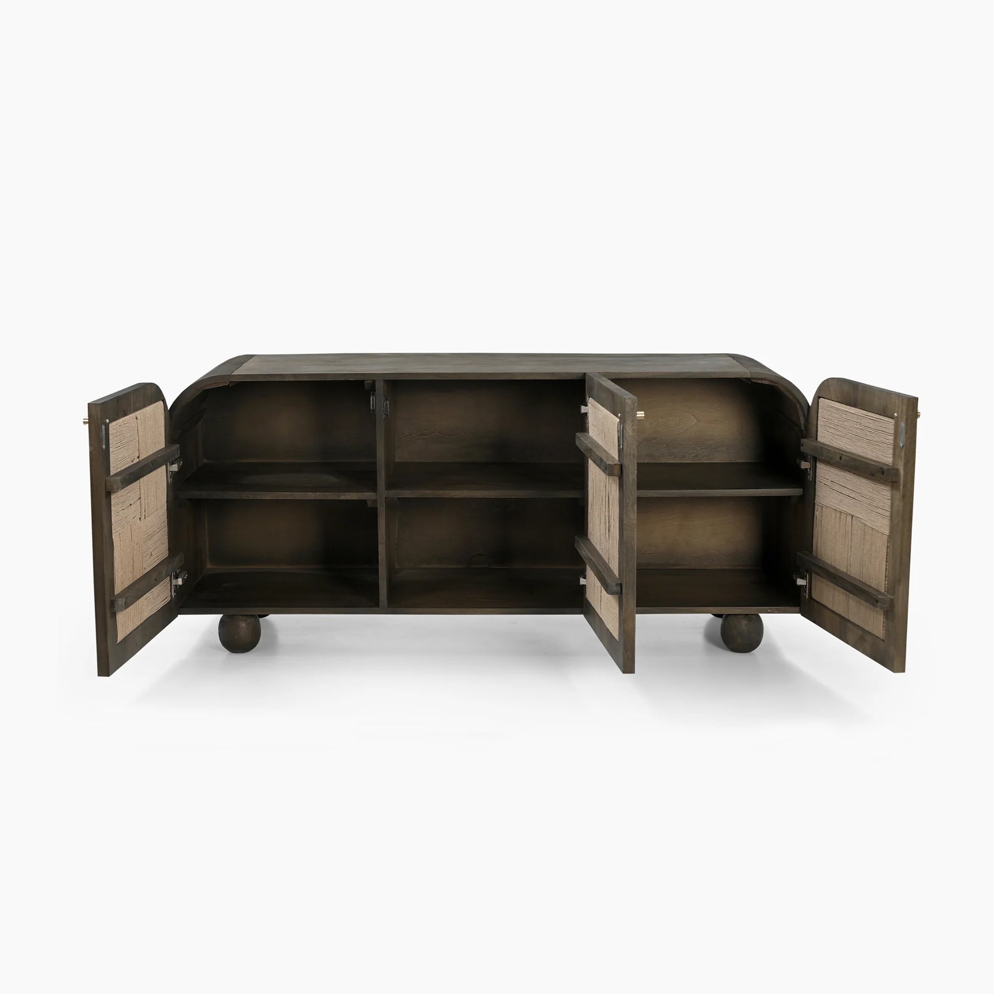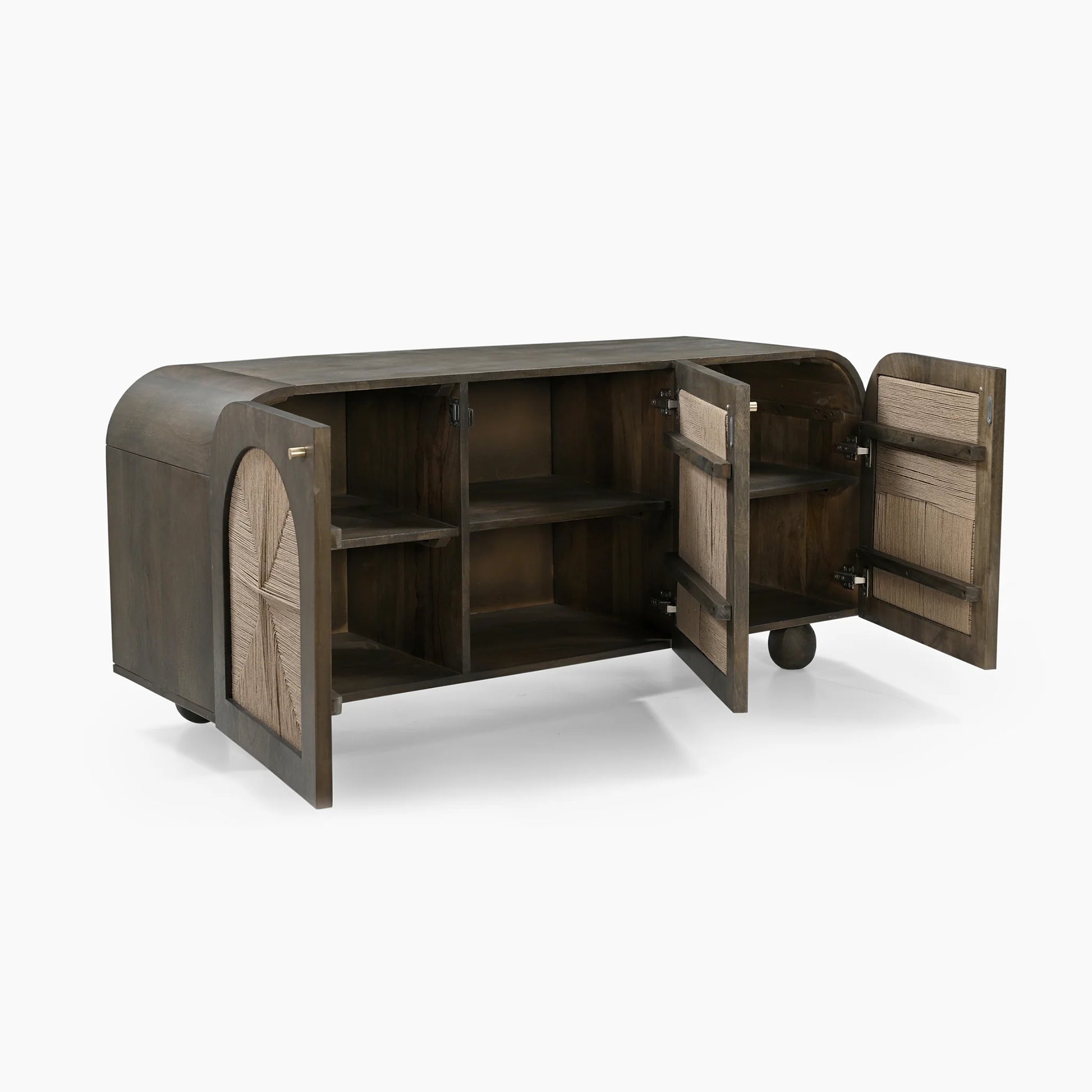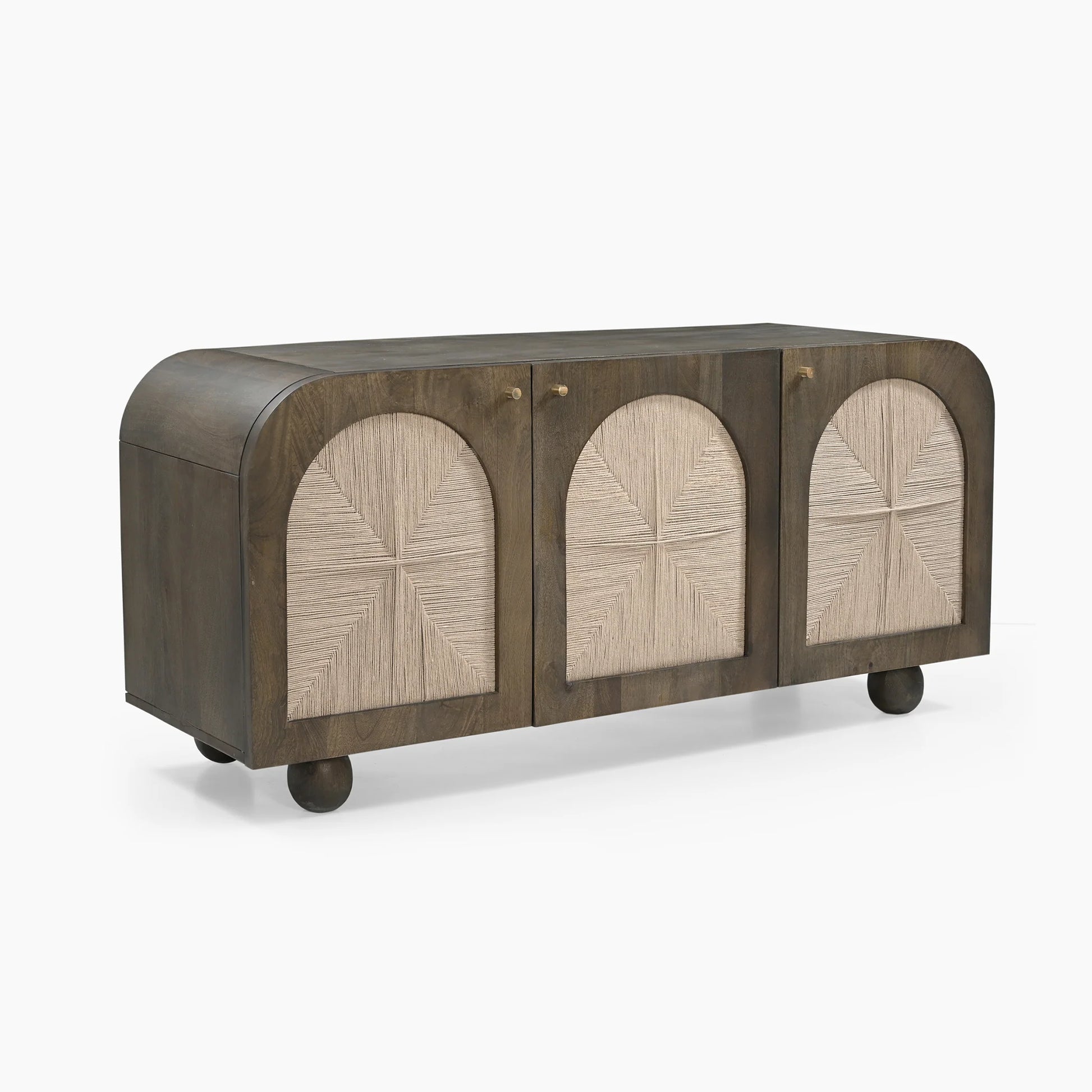 The Janus Sideboard is a stunning addition to any home, featuring a unique design that combines elegance and functionality. The jute inlay archway detail adds a touch of sophistication, ample of storage with 3 internal shelves provides practical storage for your essentials.