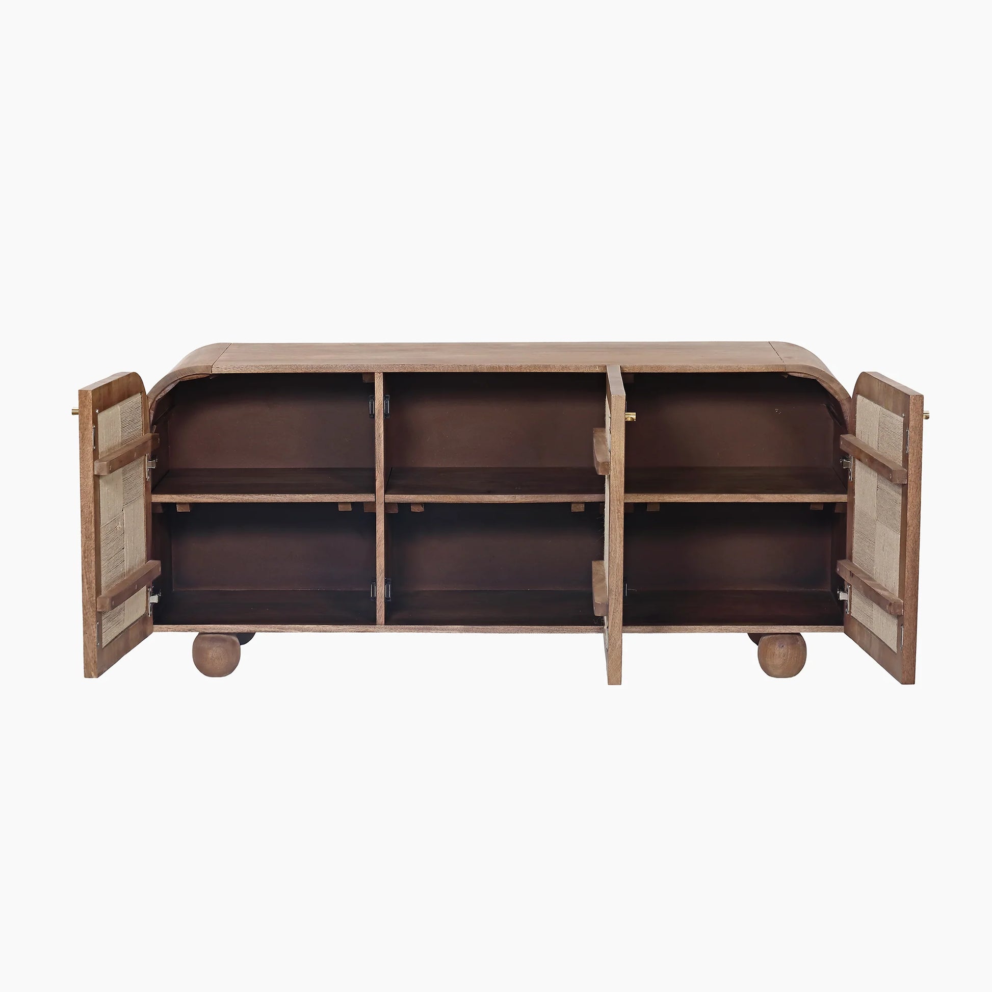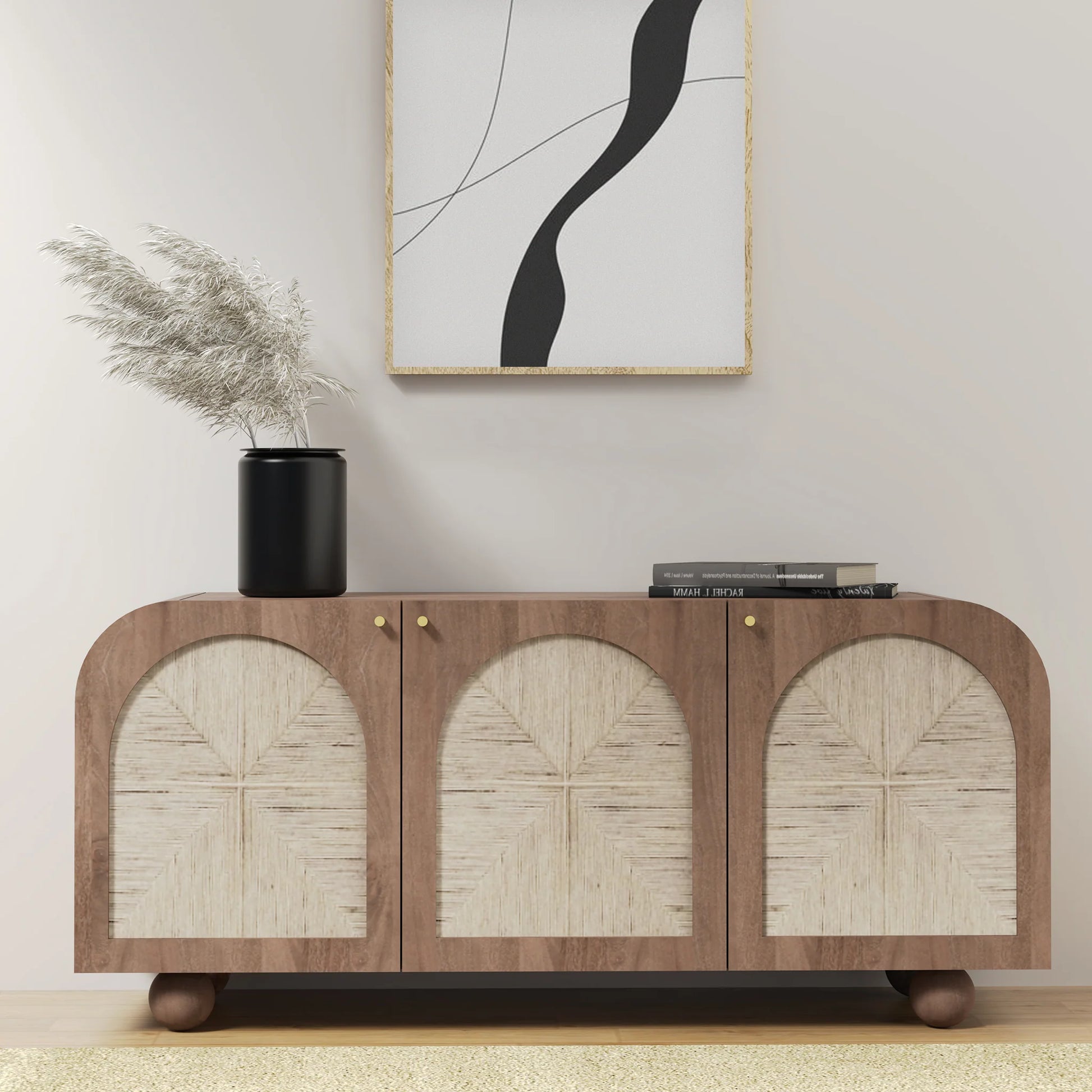 The Janus Sideboard is a stunning addition to any home, featuring a unique design that combines elegance and functionality. The jute inlay archway detail adds a touch of sophistication, ample of storage with 3  internal shelves provides practical storage for your essentials.