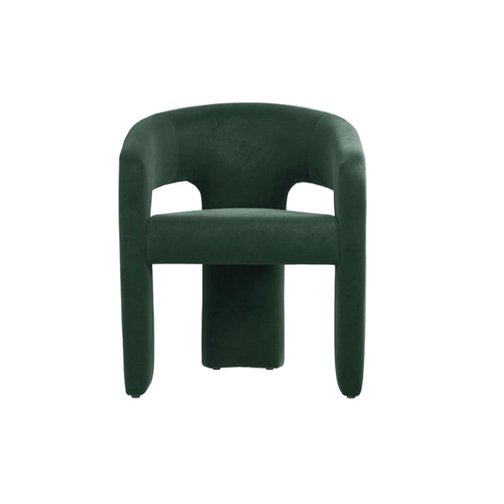 The Jess Curve Dining Chair is a stunning addition to the Art of Modern Luxury collection. Its modern and stylish design features a soft, forest green velvet upholstery that adds a touch of elegance to any dining setting.