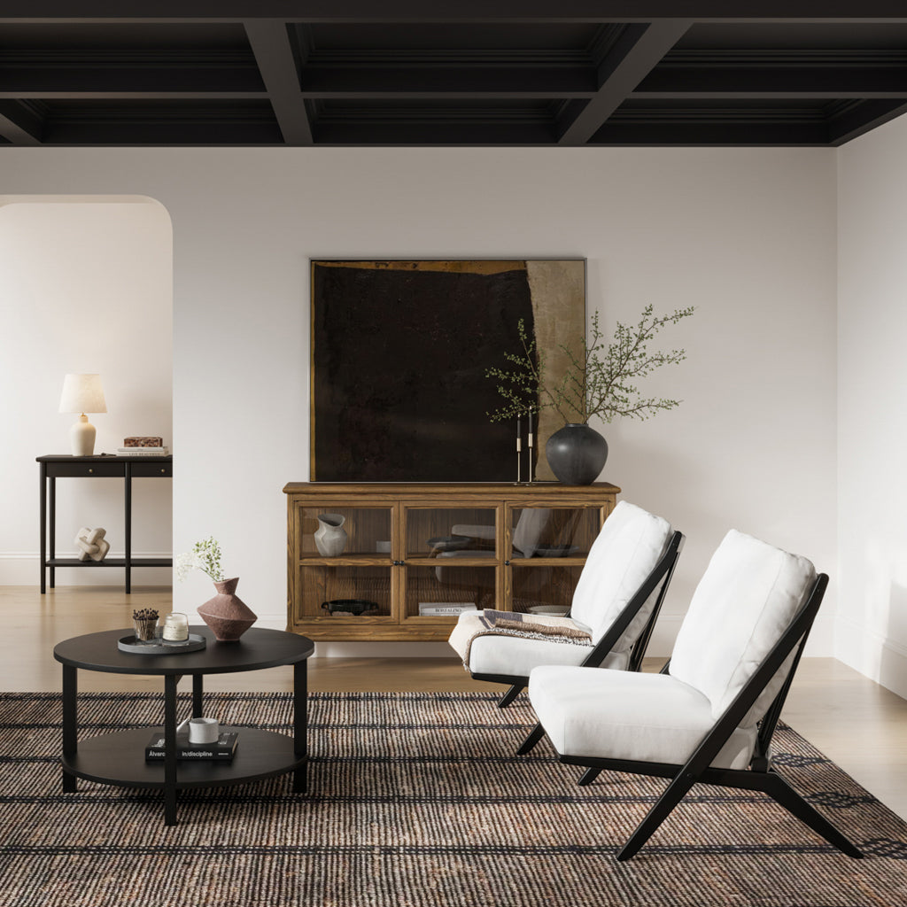 Available in either black with charcoal upholstery or black with white upholstery the Josh Accent Chair can effortlessly complement any décor, making it a versatile choice for your home.