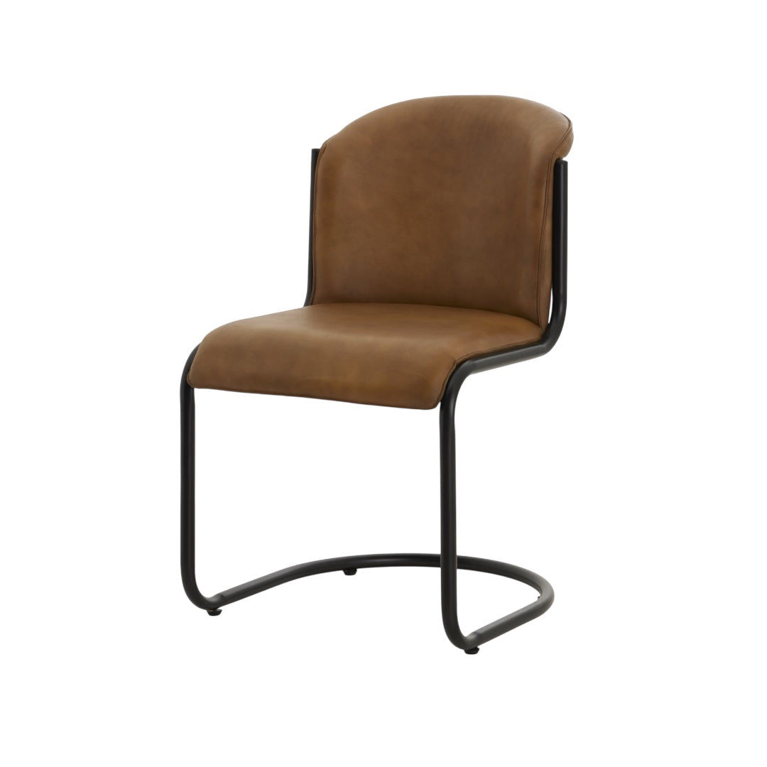 The Mac Curved Leather Dining Chair boasts a striking silhouette that commands attention in any space. Its supple, caramel-hued leather upholstery exudes a timeless sophistication, while the sleek, black metal frame provides a modern contrast. The chair's distinctive vertical channelling adds a touch of industrial flair, making it a versatile piece that seamlessly blends with a range of interior styles, from rustic-chic to contemporary. Pair this striking chair with a polished wooden table for a cohesive look, or mix and match it with other industrial-inspired pieces to create a dynamic, eclectic dining area. Crafted with meticulous attention to detail, the Mac Leather Dining Chair is a must-have addition to any discerning trade customer's collection.