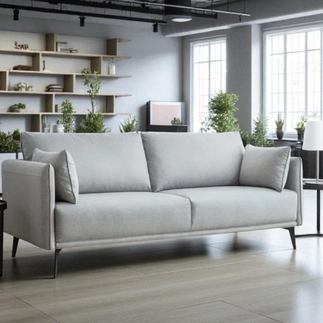The Metro 3 Seater Sofa combines modern design with durable construction, featuring angular metal legs that add a sleek industrial touch. Upholstered in a grey wool-effect fabric, it offers both comfort and style with piped cushion detailing that enhances its clean-lined silhouette. Perfectly suited for industrial to contemporary interiors, this sofa delivers a refined yet versatile seating solution for your living space.