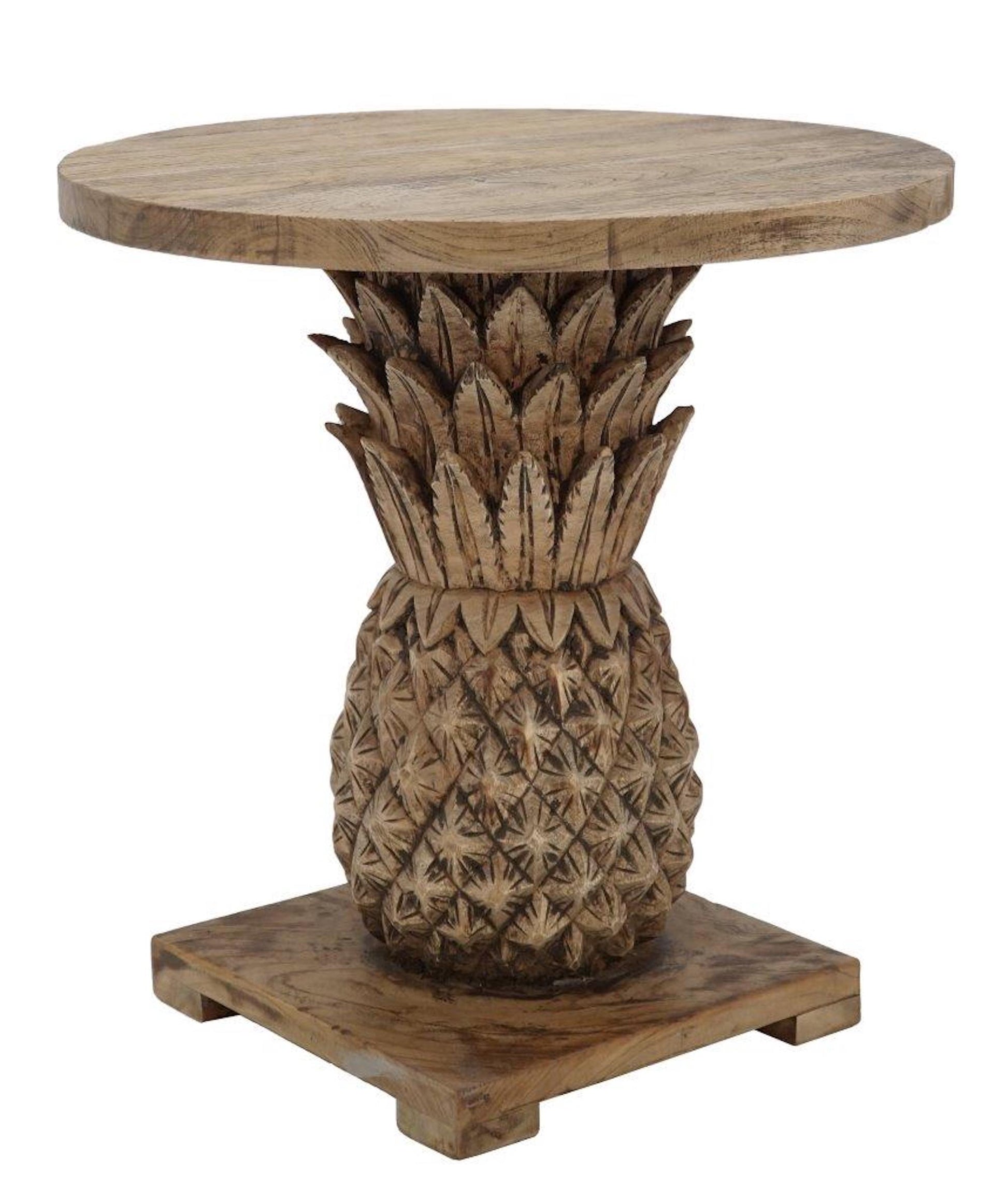 Elevate your living space with the Pineapple Side Table, featuring intricately carved pineapple leg that serve as a striking focal point. Measuring 50cm wide, 50 cm deep, and 50 cm high, this elegant piece blends artistry and functionality seamlessly. Perfect for adding sophistication and charm, it pairs beautifully with a matching coffee table to complete your décor. A unique statement item designed to spark conversation and enhance any home setting.
