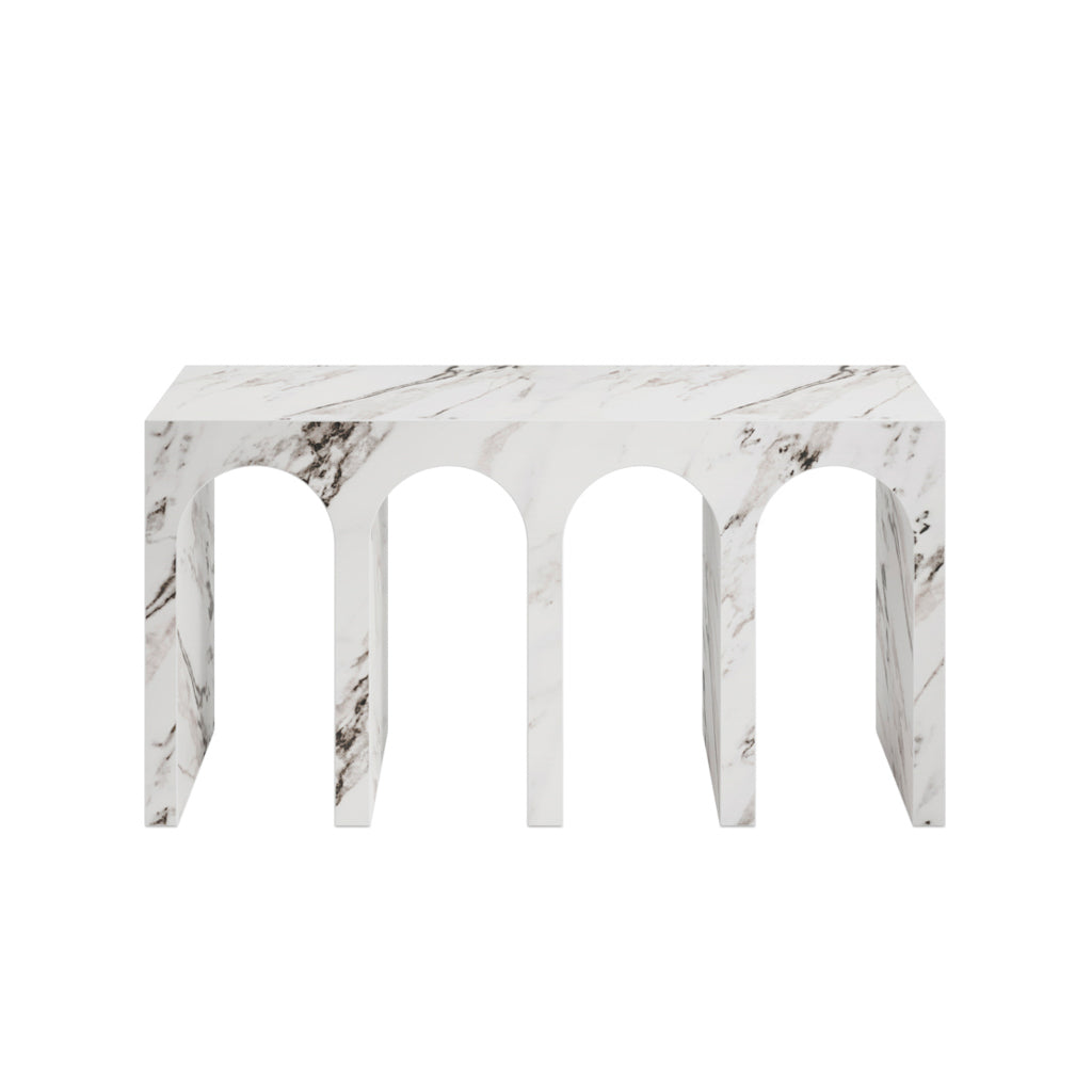 The Ponte Console is a stunning addition to any modern home, showcasing a unique blend of style and functionality. Crafted from a striking Calacatta marble effect, this console table is designed to make a bold statement.