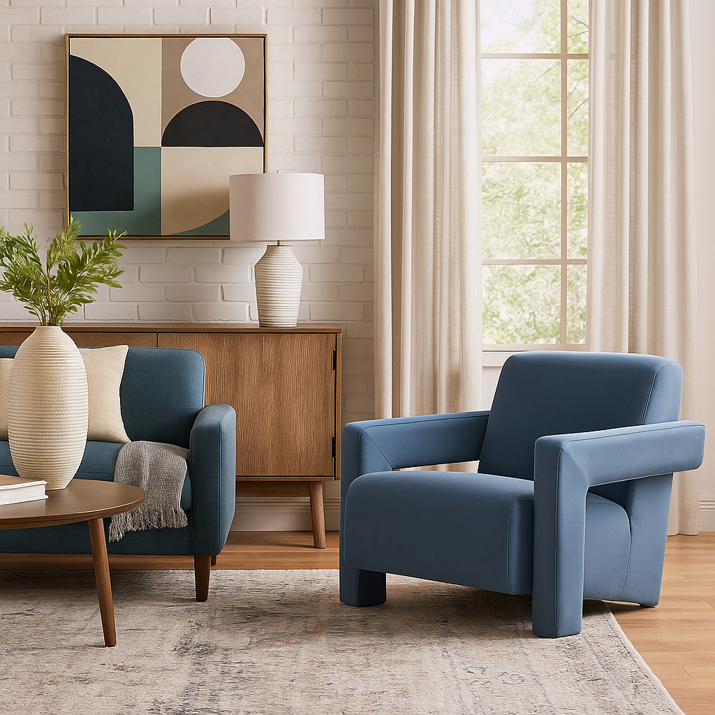 The L-shaped armrests connect the back to the bottom, doubling as front legs, which adds to its engaging visual appeal. Thoughtfully constructed with eco-friendly materials, this chair supports a sustainable lifestyle.