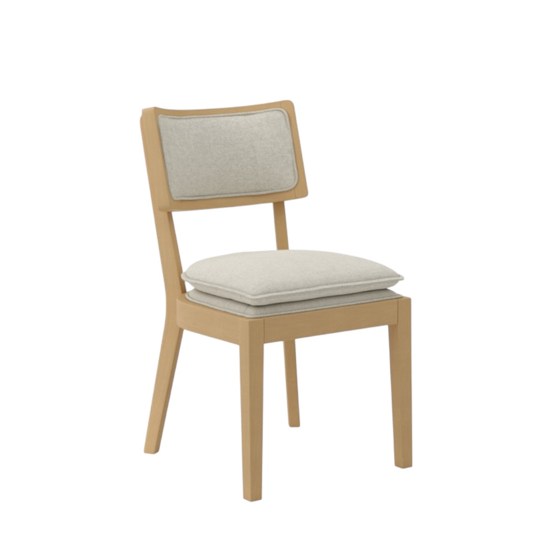 The Stoney dining chair combines woven neutral upholstery fabric with a warm wood frame. Featuring a double seat pad for ultimate comfort with piping detail and an open back for easy cleaning, it’s a stylish and practical choice for any modern dining space.