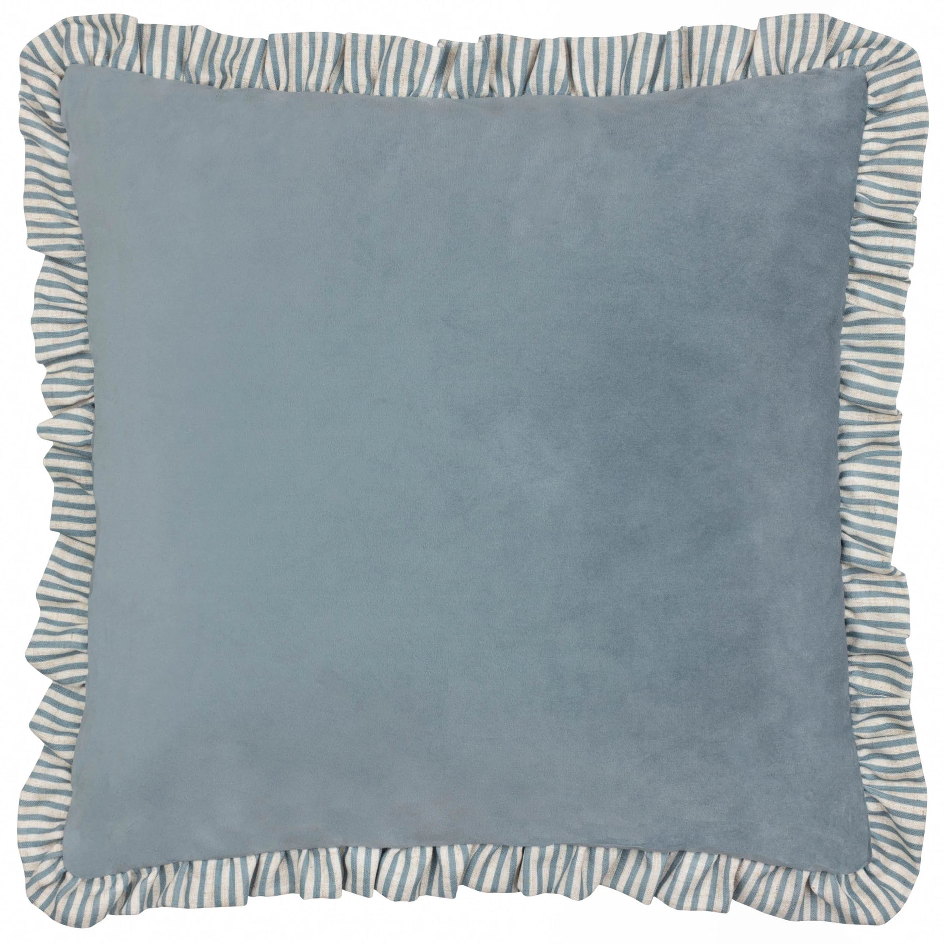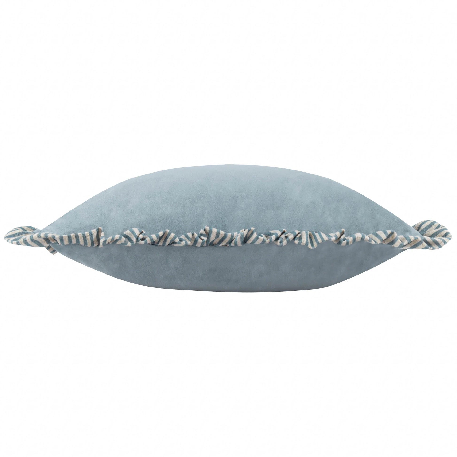 Experience understated luxury with the Stripped Ruffle Cushion, crafted from plush velvet and accented by a refined ruffled linen strip trim. Sized at 45 cm by 45 cm, it is available in gentle baby blue or baby pink, with a choice of fibre or feather filling to suit your comfort preferences. This elegant cushion adds a graceful, soft touch to any sophisticated interior.