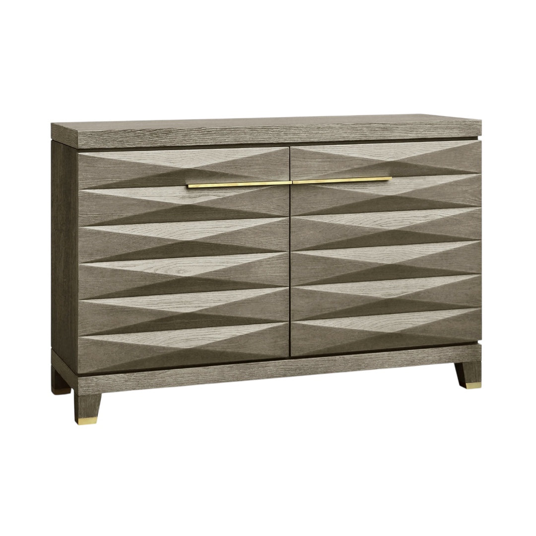 The Rhomus 2-Door Cabinet comes in a striking diamond shaped design, which is finished in textured grey/taupe coloured oak veneer, and is fitted with gold handles. Modern with an inspired design. The Rhombus cabinet has plenty of storage making this practical as well as a stylish statement piece for your home.